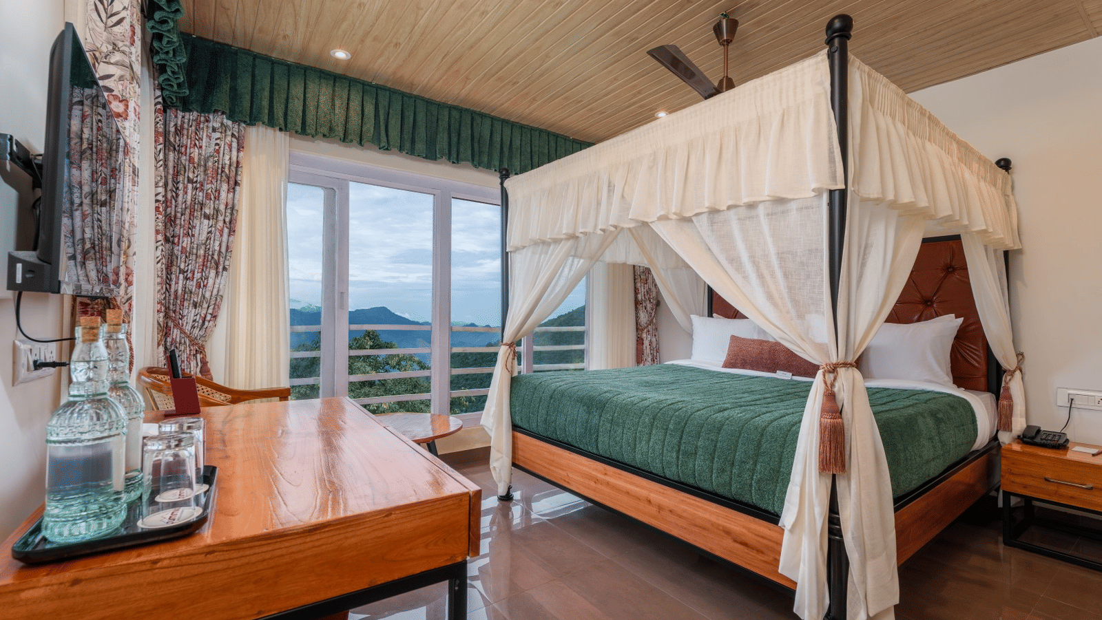 Equipped with king sized canopy beds, work desk and other furnished fitments, our rooms are spacious and commodious for a maximum of guests 4. Besides, these rooms are oasis of calmness with mountain views that render relaxing staycation.
