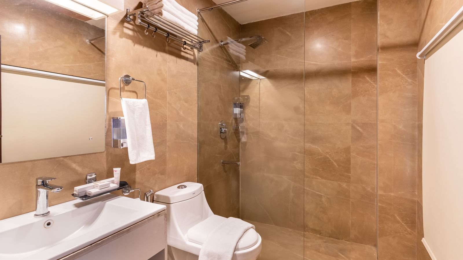 These 300 sq. ft. hotel rooms in Gangtok offer a perfect blend of comfort and breathtaking views. Wake up to the golden sunrise painting the valley or sip on a warm cup of coffee on the common terrace, letting the mountain breeze refresh your spirit. Inside, a king size bed and thoughtfully chosen amenities—including a TV, free Wi-Fi, a tea/coffee maker, a work desk, a wardrobe, a sofa, and an in-room safe—ensure your stay is as relaxing as the scenery outside. You'll also find essential toiletries, bath slippers, and the convenience of 24-hour room service and laundry service. For added comfort, a room heater and iron are available on request. Accommodating up to four guests, these rooms are a cosy retreat for families and friends seeking the magic of the mountains.